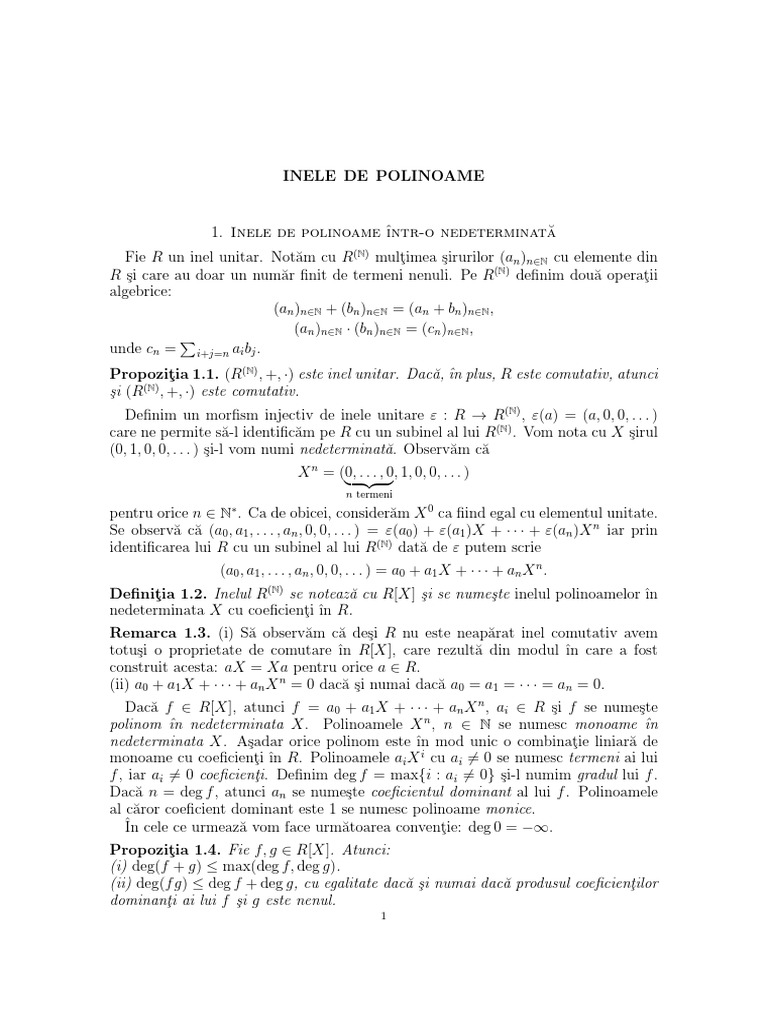 vizitati articolul complet aici : upload.wikimedia.org Forma algebrica a unui polinom. Teorema daca f izx si are radacini intregi atunci ele sunt divizori ai termenului liber, daca are radacini rationale (de forma ) atunci p e divizor al termenului liber iar q e divizor al coeficientului dominant. Mulţimile apar ca obiecte matematice foarte devreme în învăţămîntul modern, sub o formă intuitivă (în varianta teoriei naive a mulţimilor).
