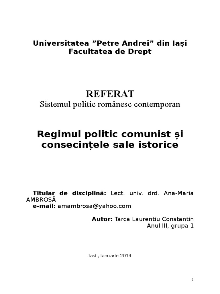 Apr 04, 2016 · elaborați, în aproximativ două pagini, un eseu despre instaurarea comunismului în românia, având în vedere: Conflictele de familie, abandonul tatălui, identitatea de gen.