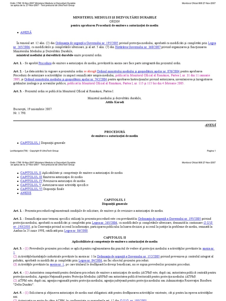 untuk "Lista Activitatilor Supuse Procedurii De Emitere A Autorizatiei De Mediu"