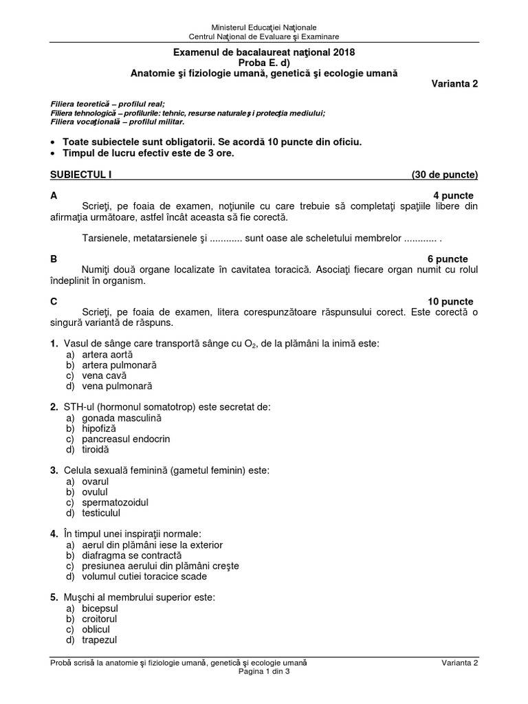 Subiectele și baremul la biologie anatomie fizică informatică și chimie. Speichern variante biologie anatomie si fiziologie umana si. Subiecte bac biologie ( 35) rezolvări ( 7)